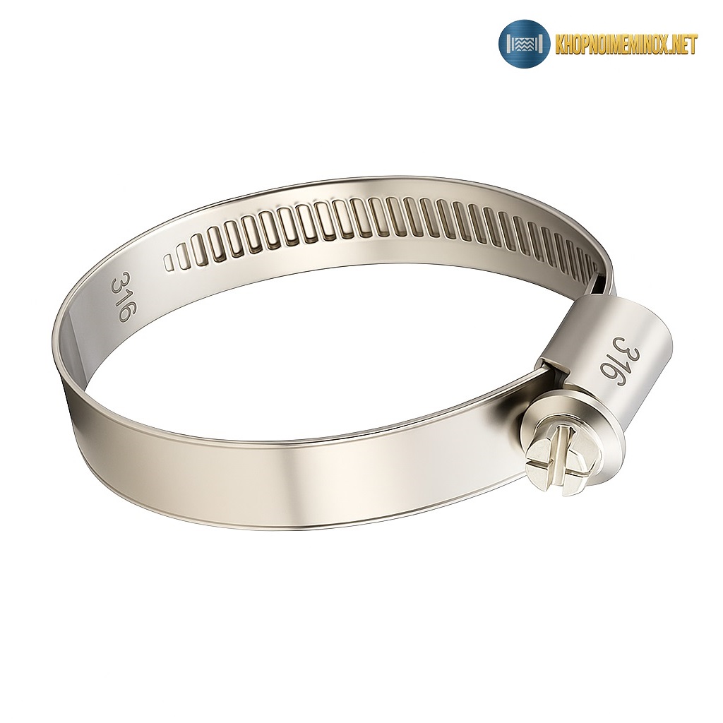So với inox 304, inox 316 có bổ sung molypden (Mo), giúp tăng khả năng chống rỗ bề mặt và ăn mòn điểm trong môi trường muối hoặc hóa chất nhẹ. Vì vậy, đai xiết inox 316 thường được sử dụng trong ngành thực phẩm, hóa chất, xử lý nước và khu vực ven biển.