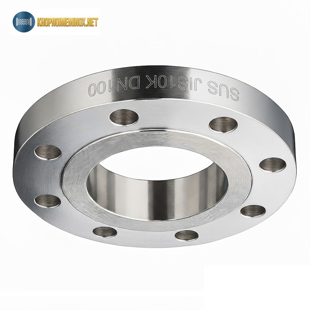 Mặt bích inox JIS10K DN100 là dòng mặt bích theo tiêu chuẩn JIS (Japanese Industrial Standards), cấp áp suất 10K, sử dụng cho đường ống DN100 – tương đương khoảng 4 inch. Đây là kích thước phổ biến trong hệ thống cấp nước, PCCC, HVAC, khí nén và nhiều dây chuyền công nghiệp tại Việt Nam.