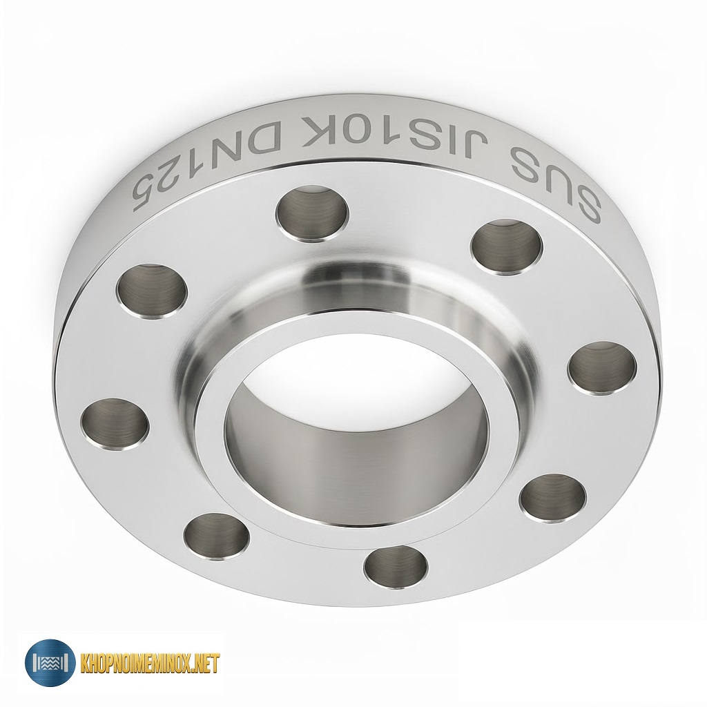 Mặt bích inox JIS10K DN125 được thiết kế theo tiêu chuẩn JIS B2220 – tiêu chuẩn mặt bích phổ biến của Nhật Bản. Kích thước DN125 (tương đương 5 inch) phù hợp với ống inox phi ~139,7 mm. Dòng mặt bích này có độ hoàn thiện cao, kích thước chính xác và khả năng chịu nhiệt, chịu áp ổn định.